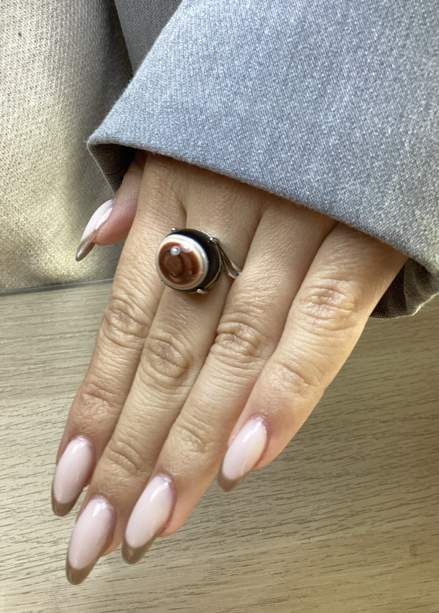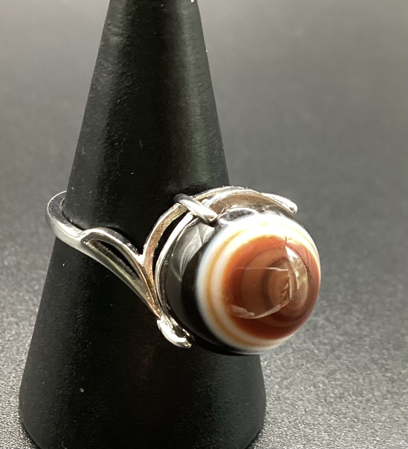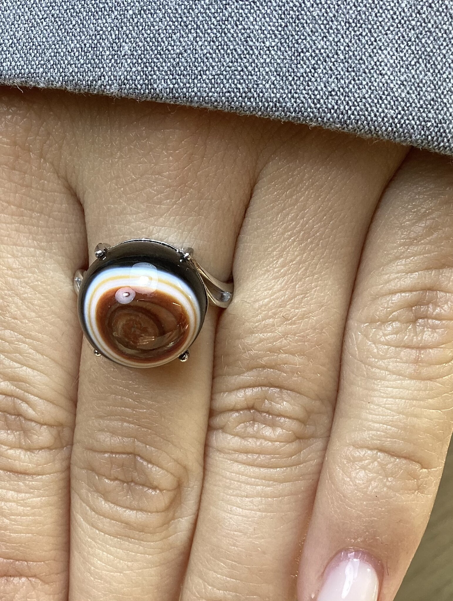 Bague ajustable en argent S925 et cabochon en Agate, dans sa forme orbiculaire.