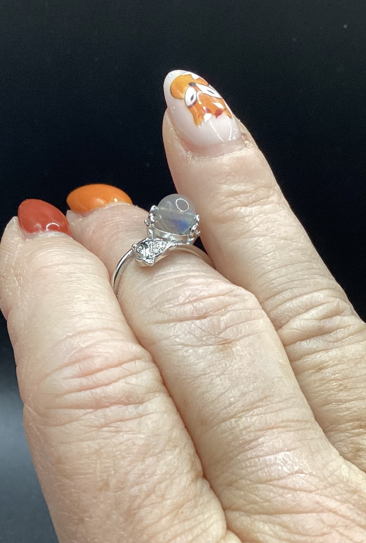 Bague péristérite (pierre de lune arc en ciel)
