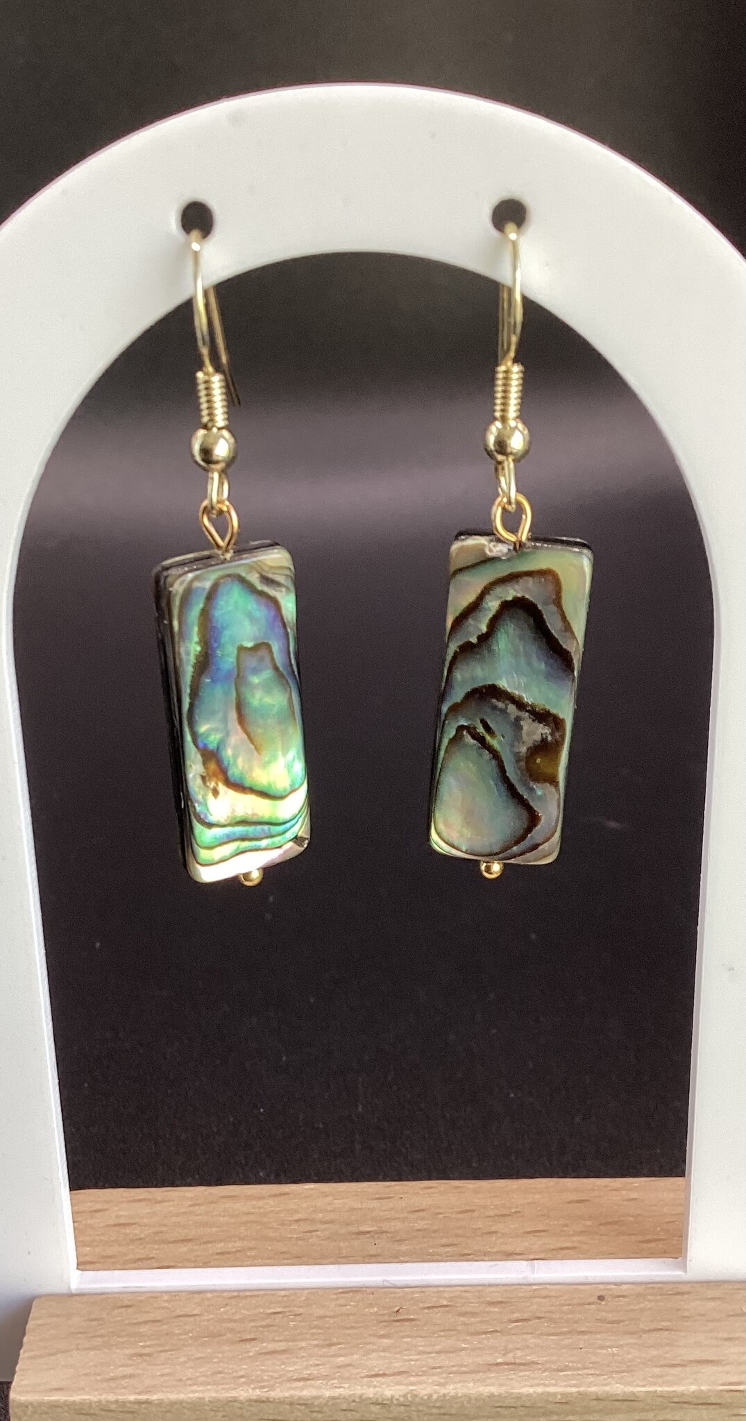 Boucles d’oreilles en nacre d’abalone, aux reflets incroyables.. crochets en argent S925 plaqué or.