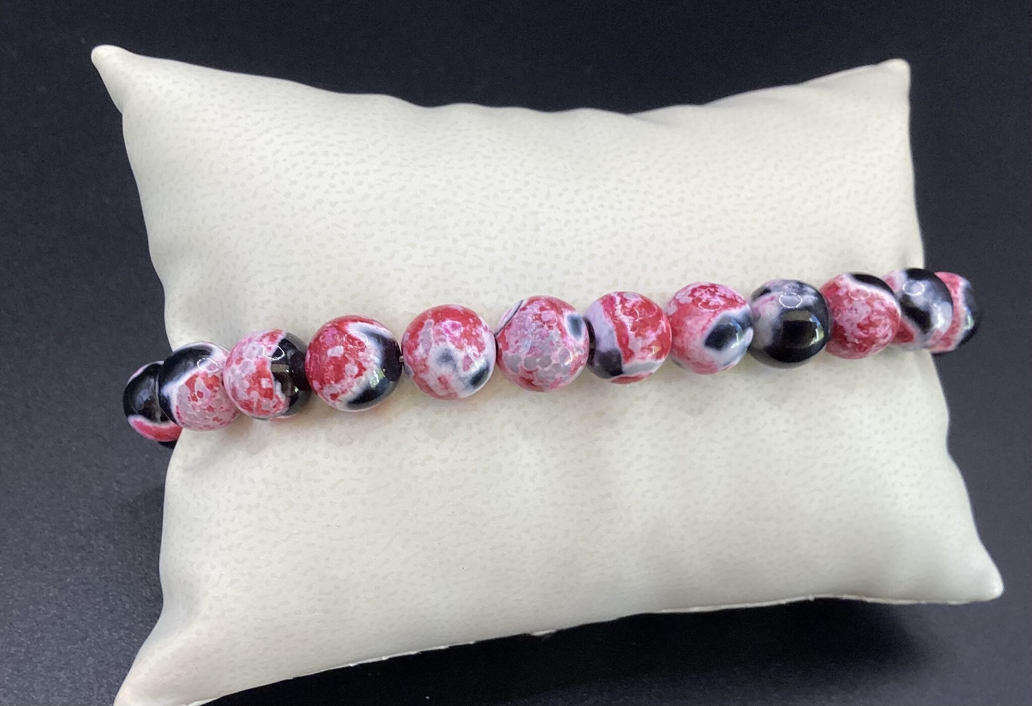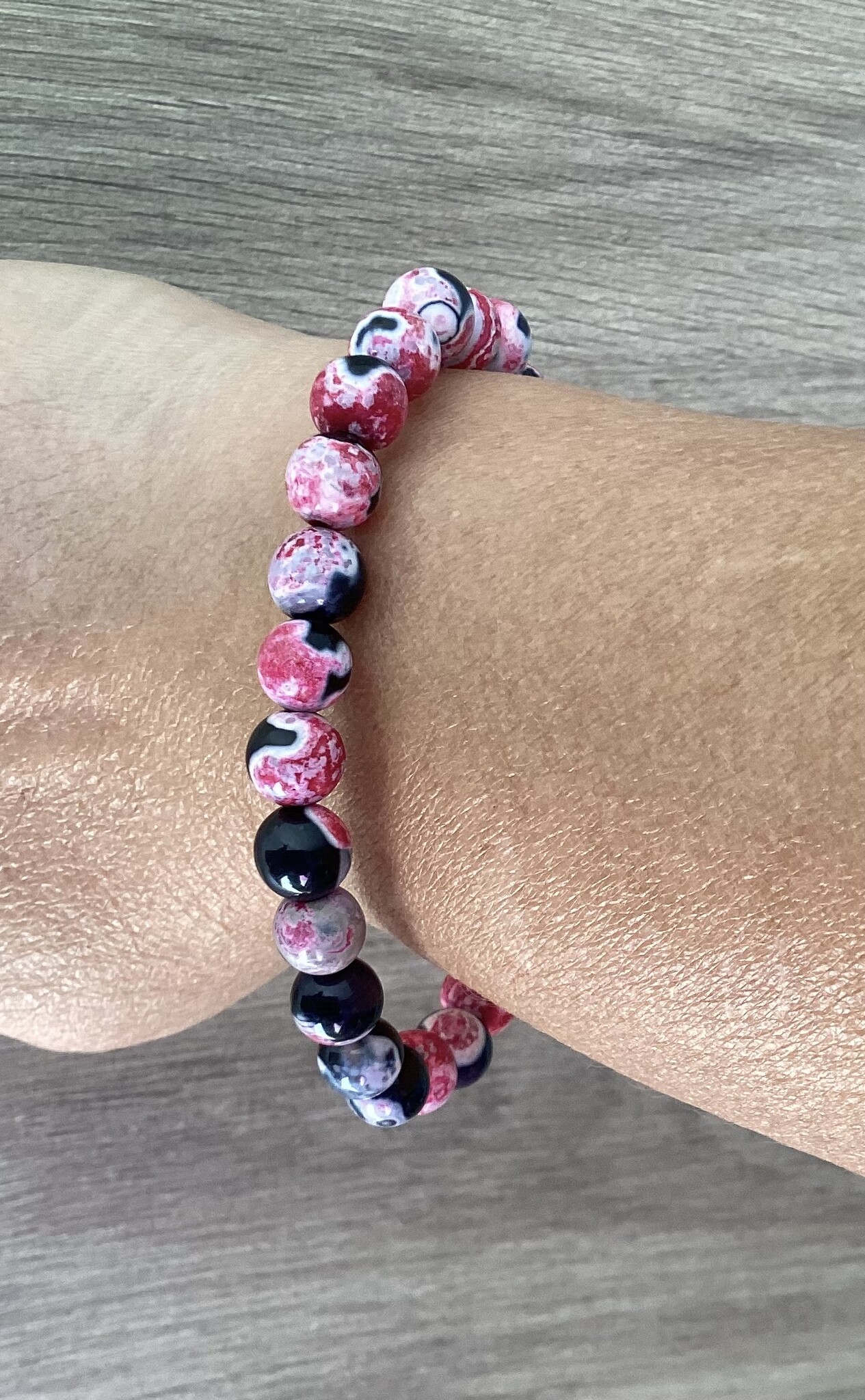 Bracelet en coquillage teinté rose trop joli ce mélange de noir et rose. Parfait pour un peu de couleur au milieu de l’hiver !