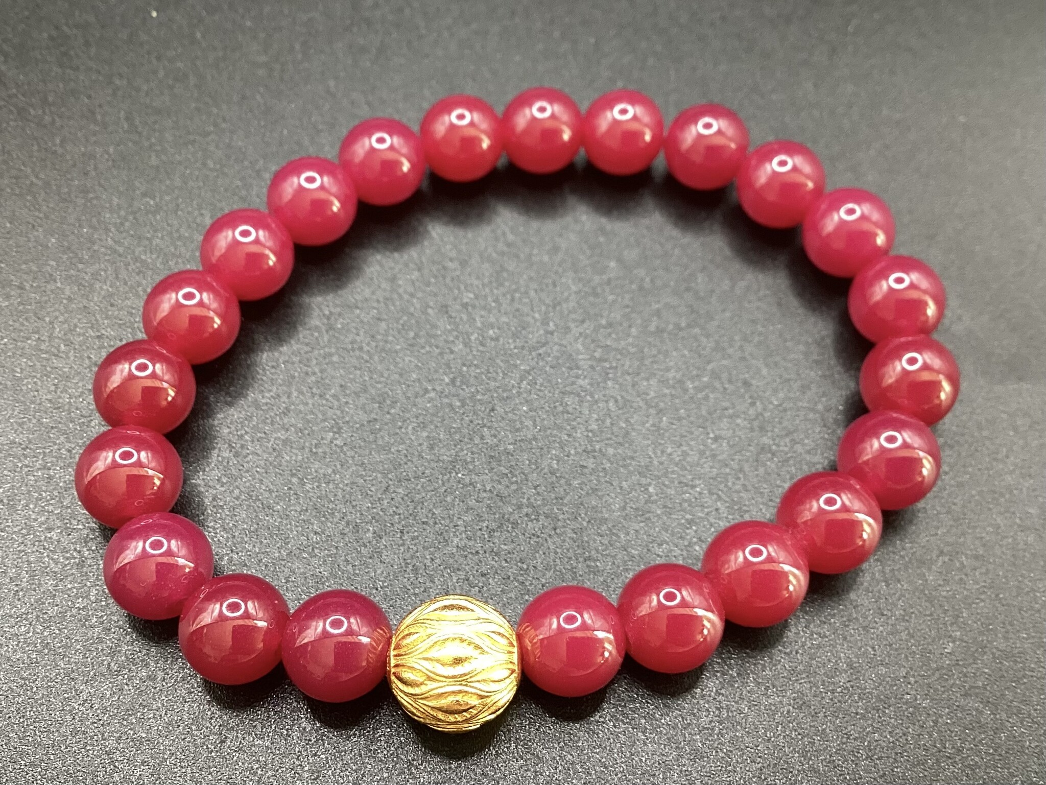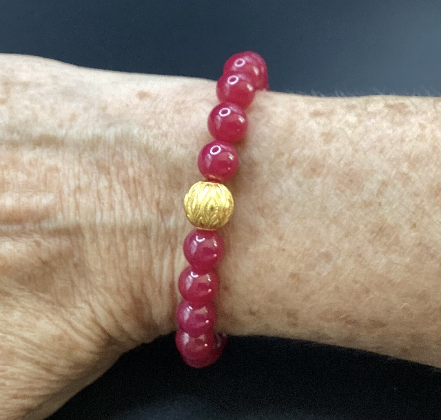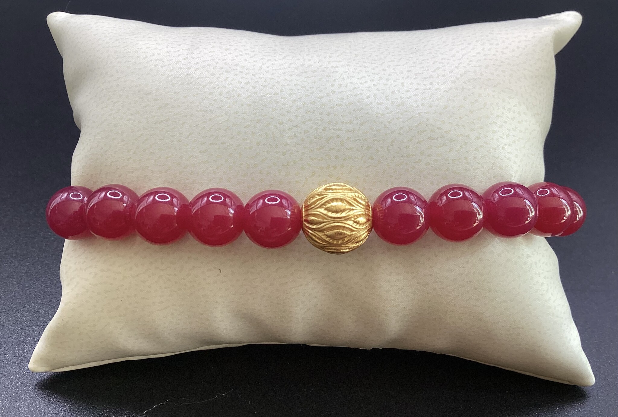 Bracelet en perles de Ruby (8mm) avec en son centre une perle en argent S925 plaqué or.