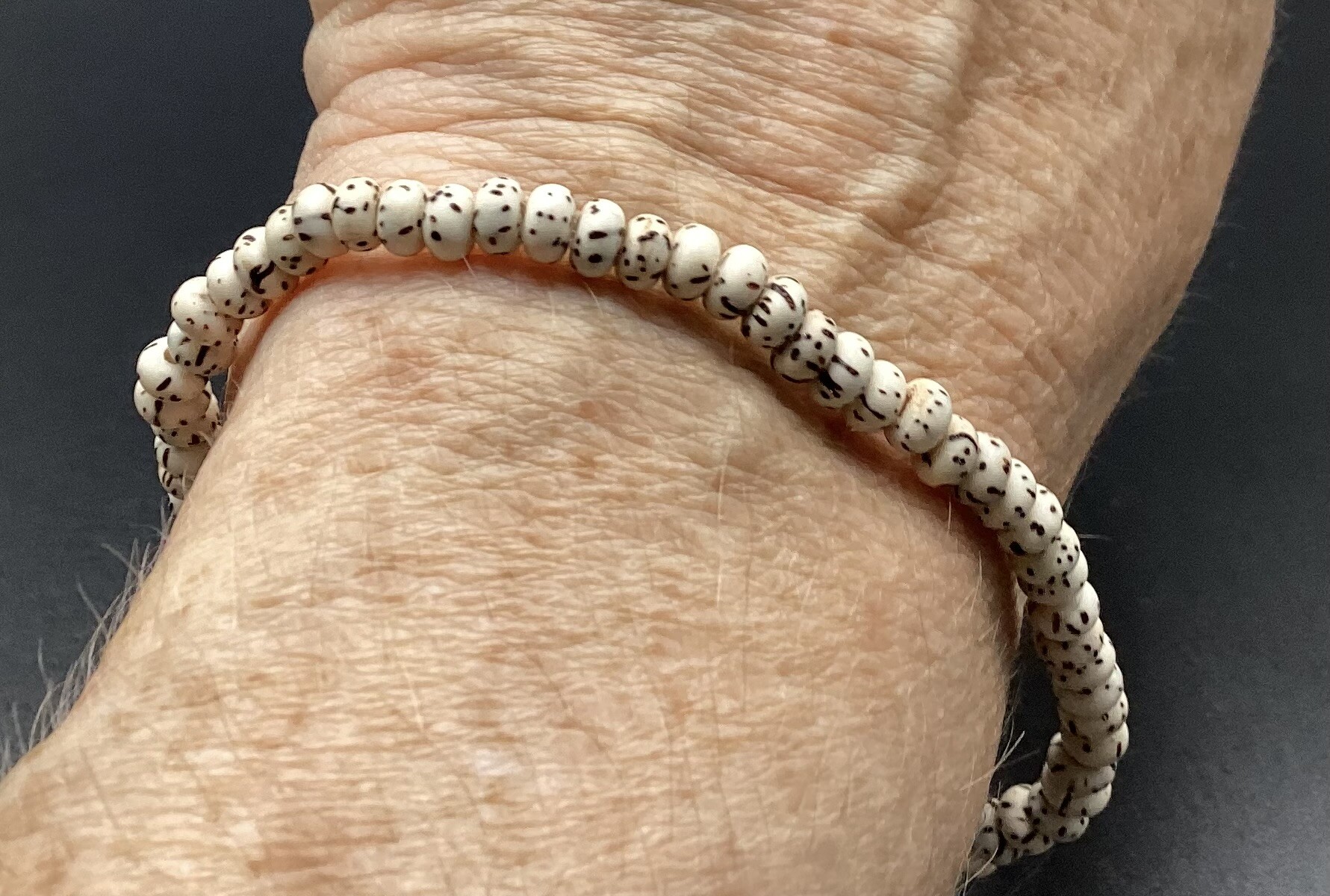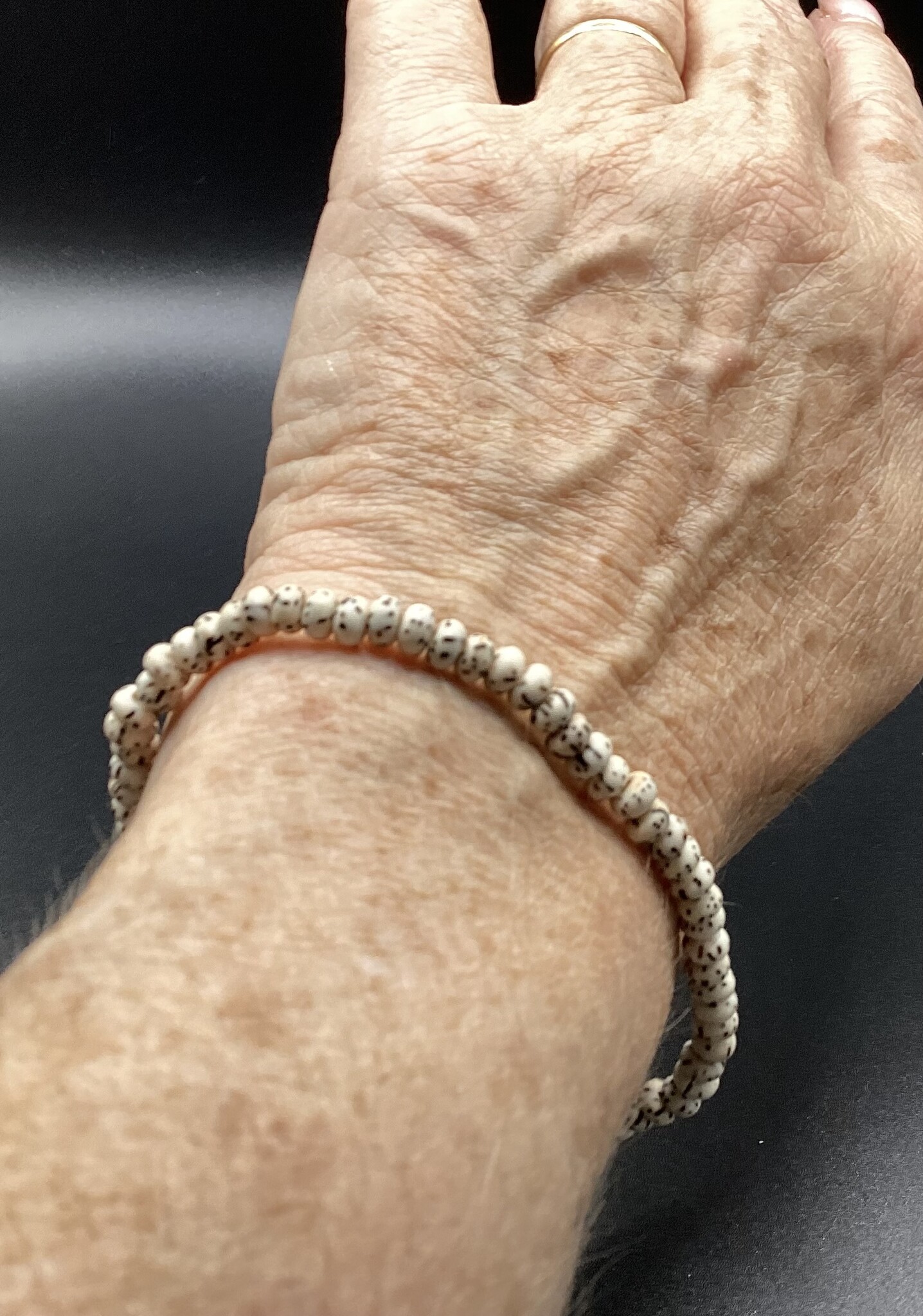 Très fin bracelet en petites graines de bodhi (5 mm). Convient à madame comme à monsieur.. joli rendu.