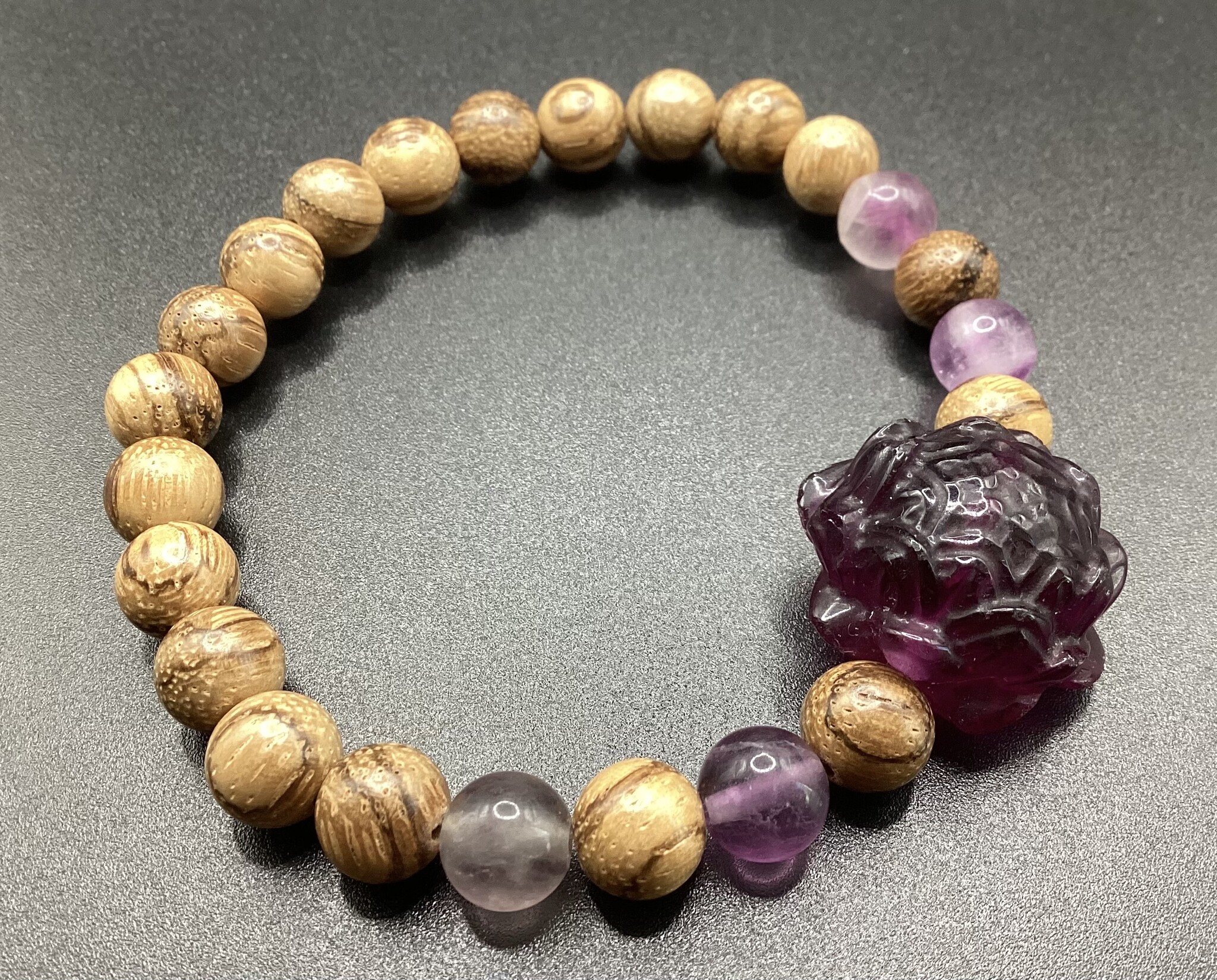 Bracelet bois agar et fluorite