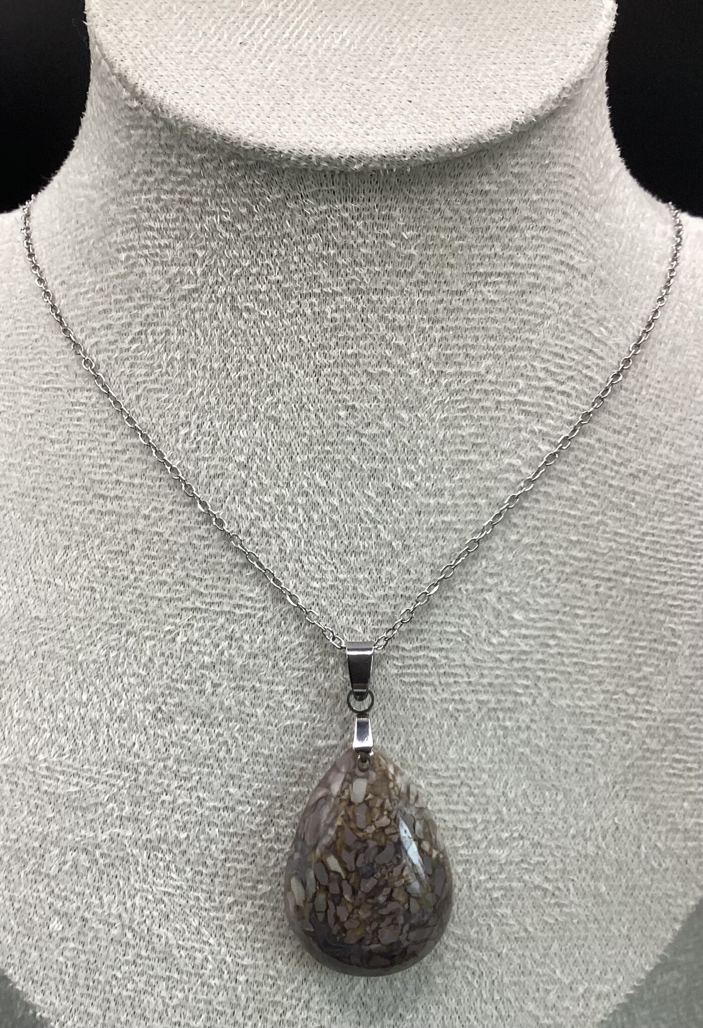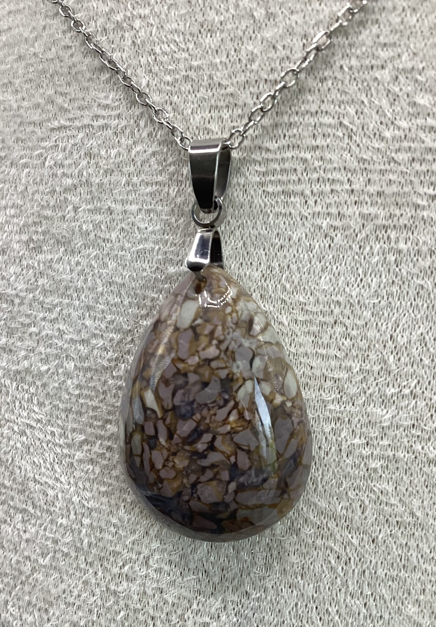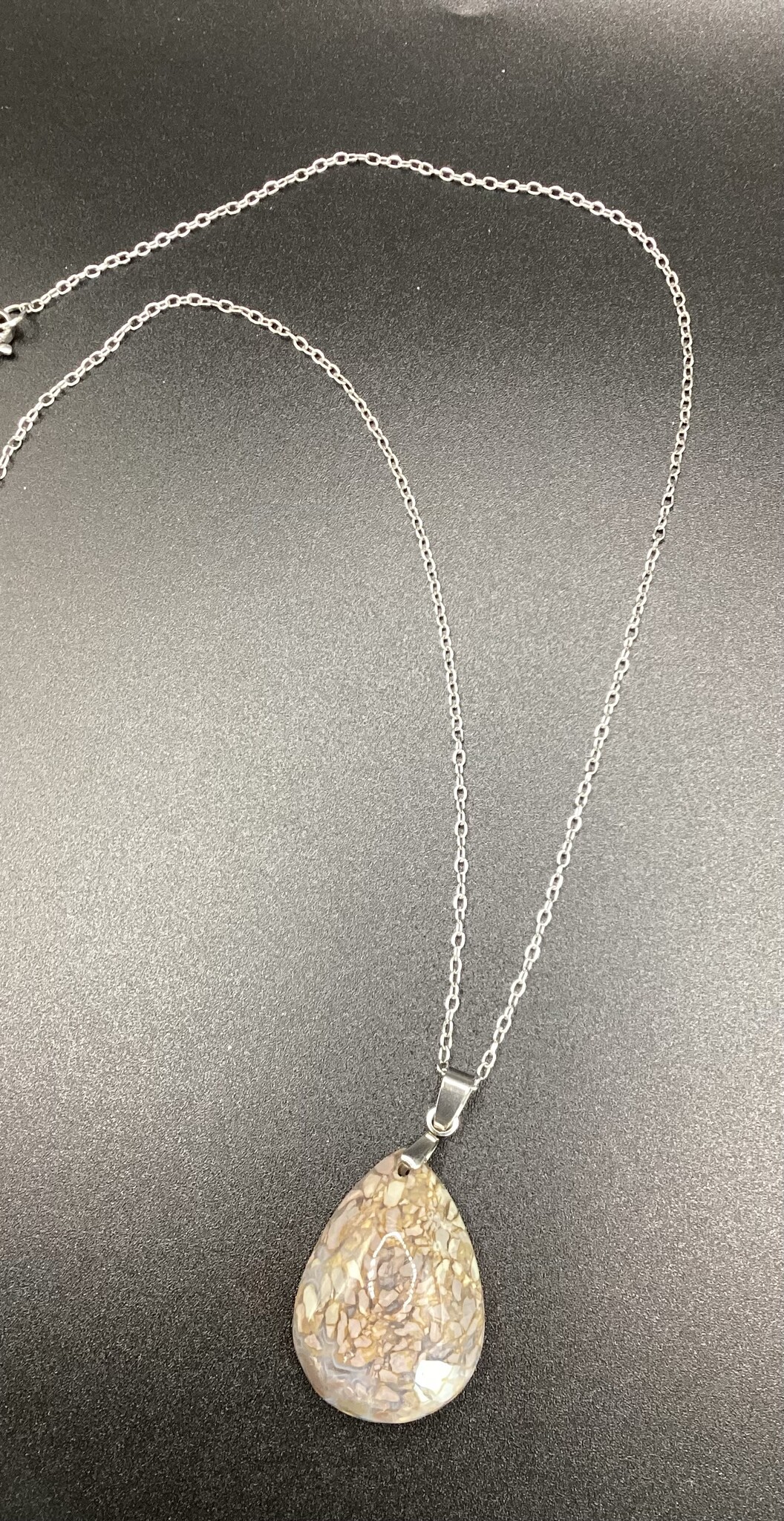 Collier chaine en acier inoxydable et une jolie goutte en agate d’Alashan craquelée. Bélière en acier inoxydable. Une pierre que l’on ne voit pas souvent. Elle est pourtant si jolie !