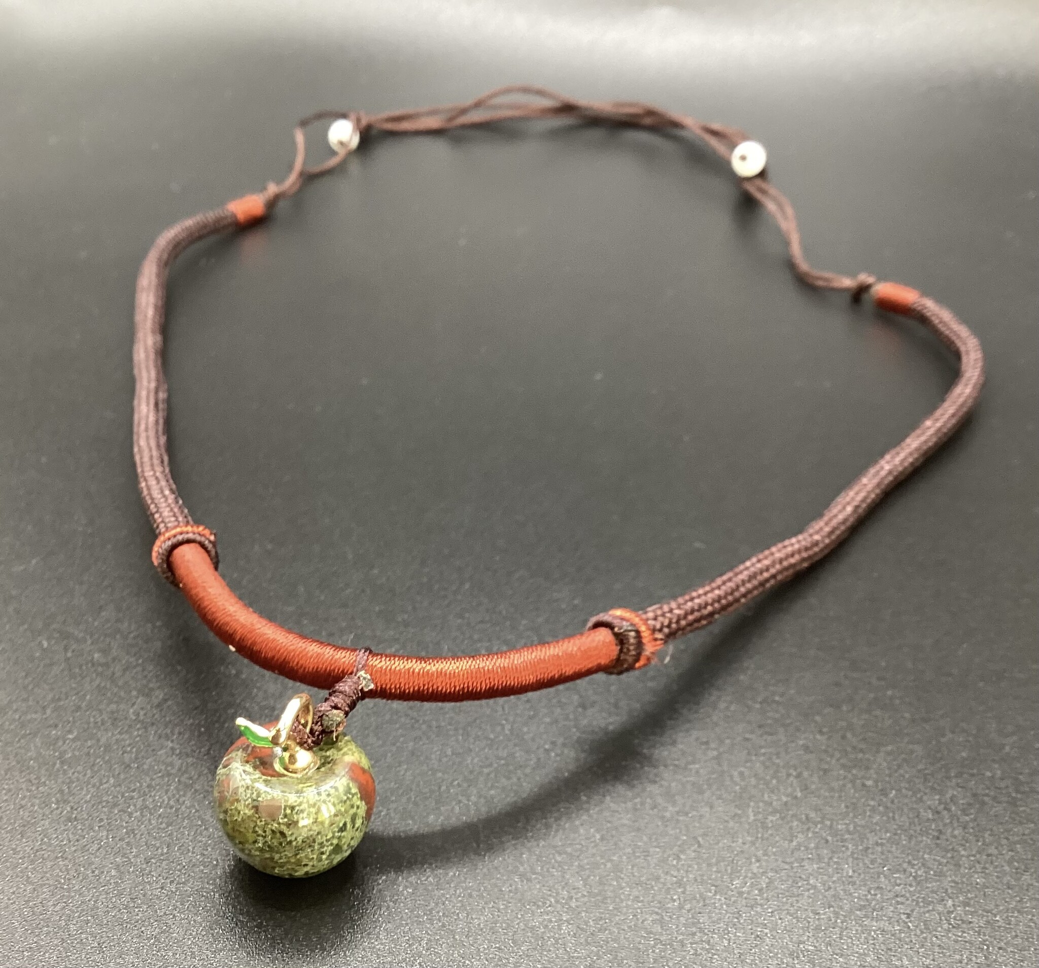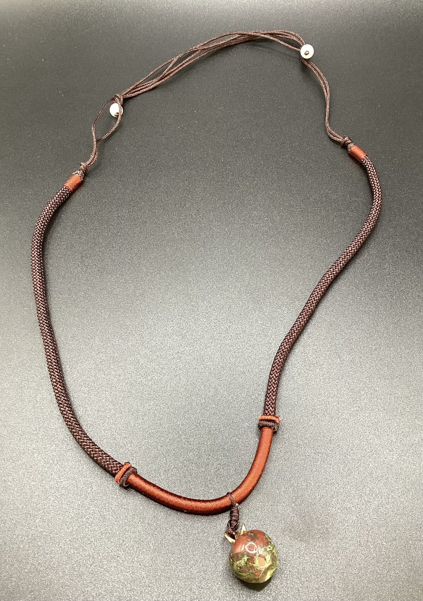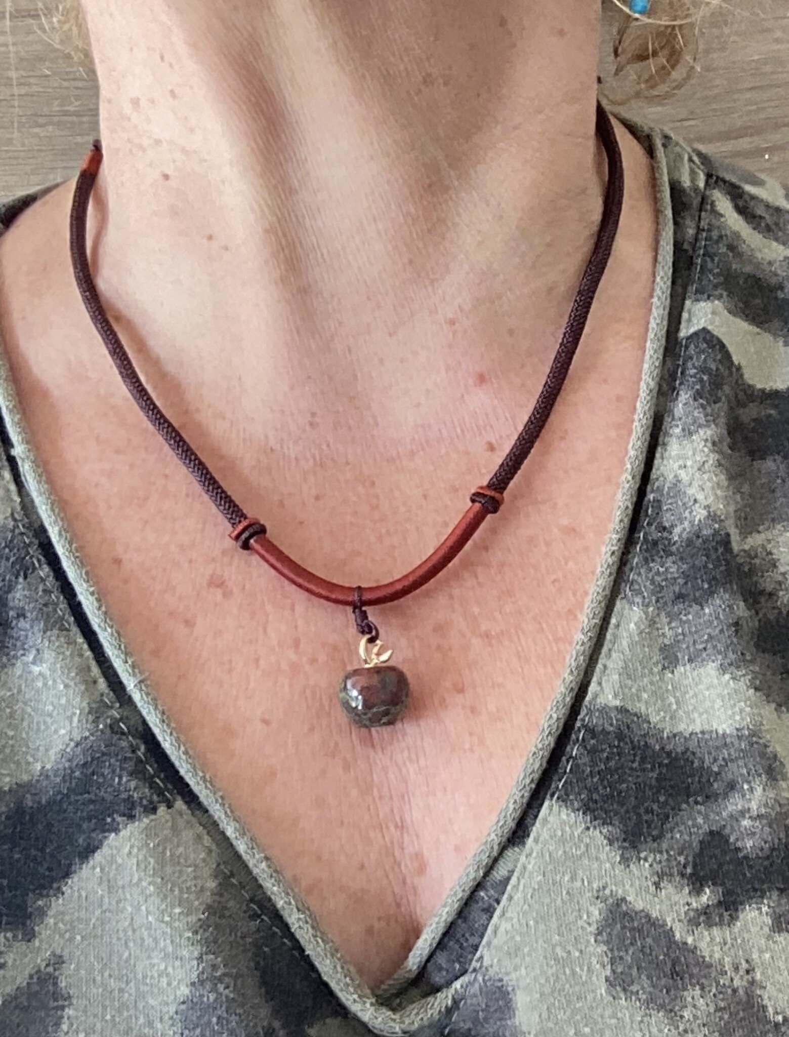 Collier pomme en jaspe sang de dragon, et cordon ajustable . Tons automnale pour ce joli collier !