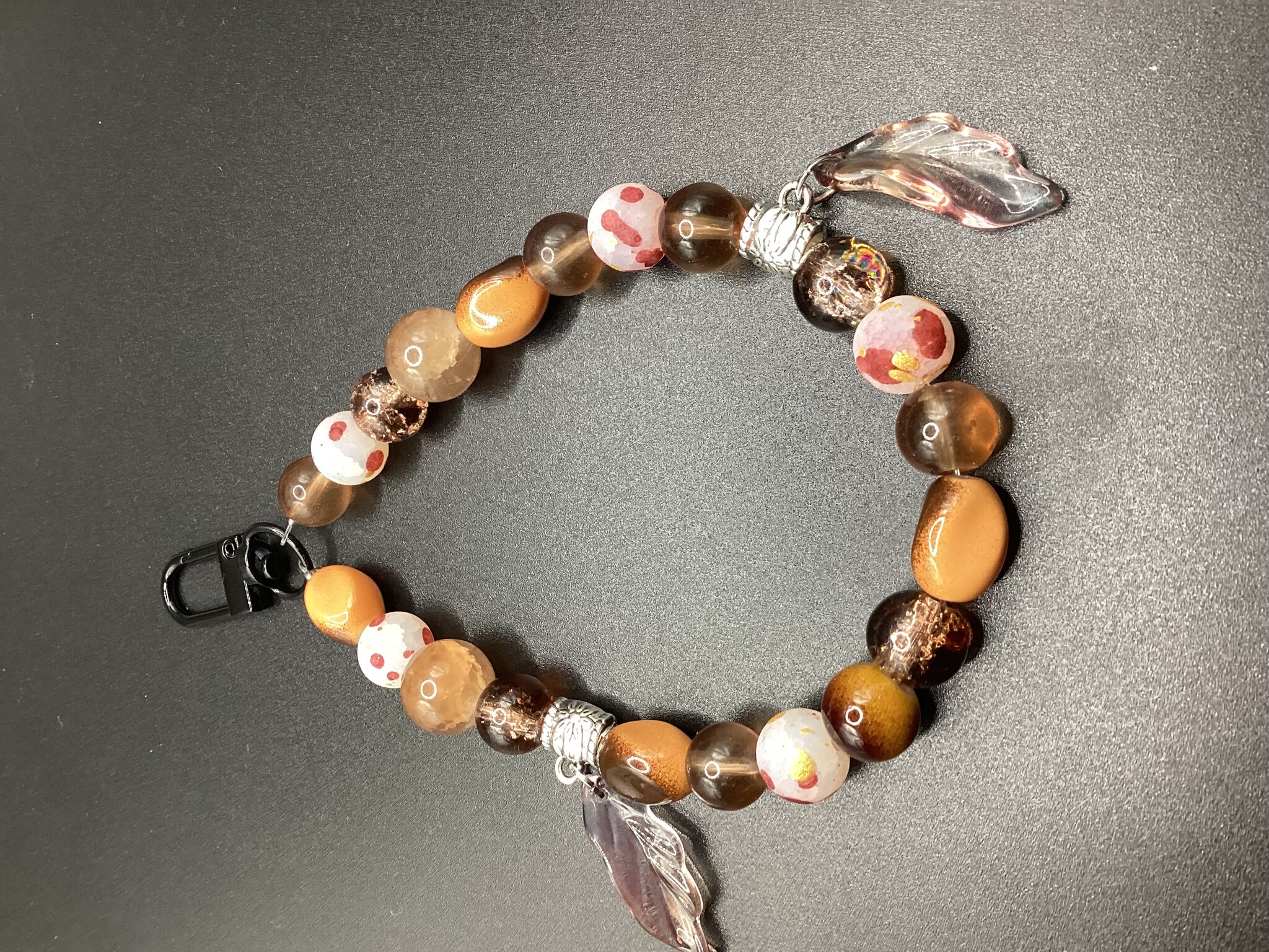 Un petit porte clés en perles de verre aux couleurs de l’automne ! Détails en alliage.