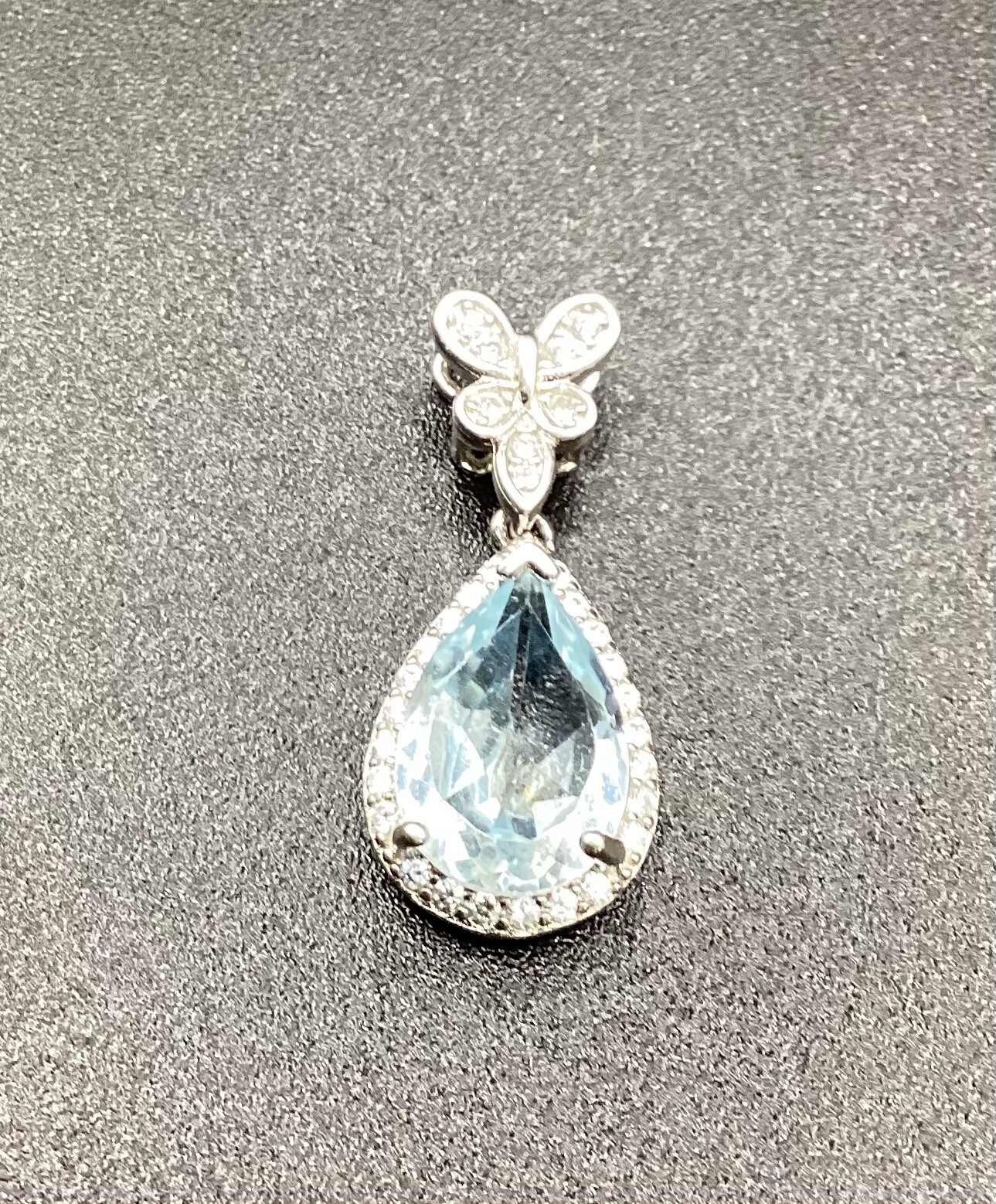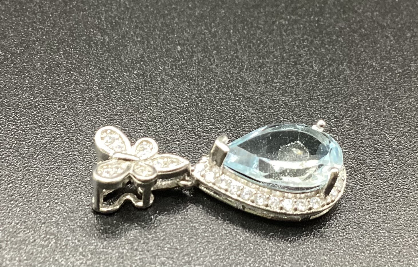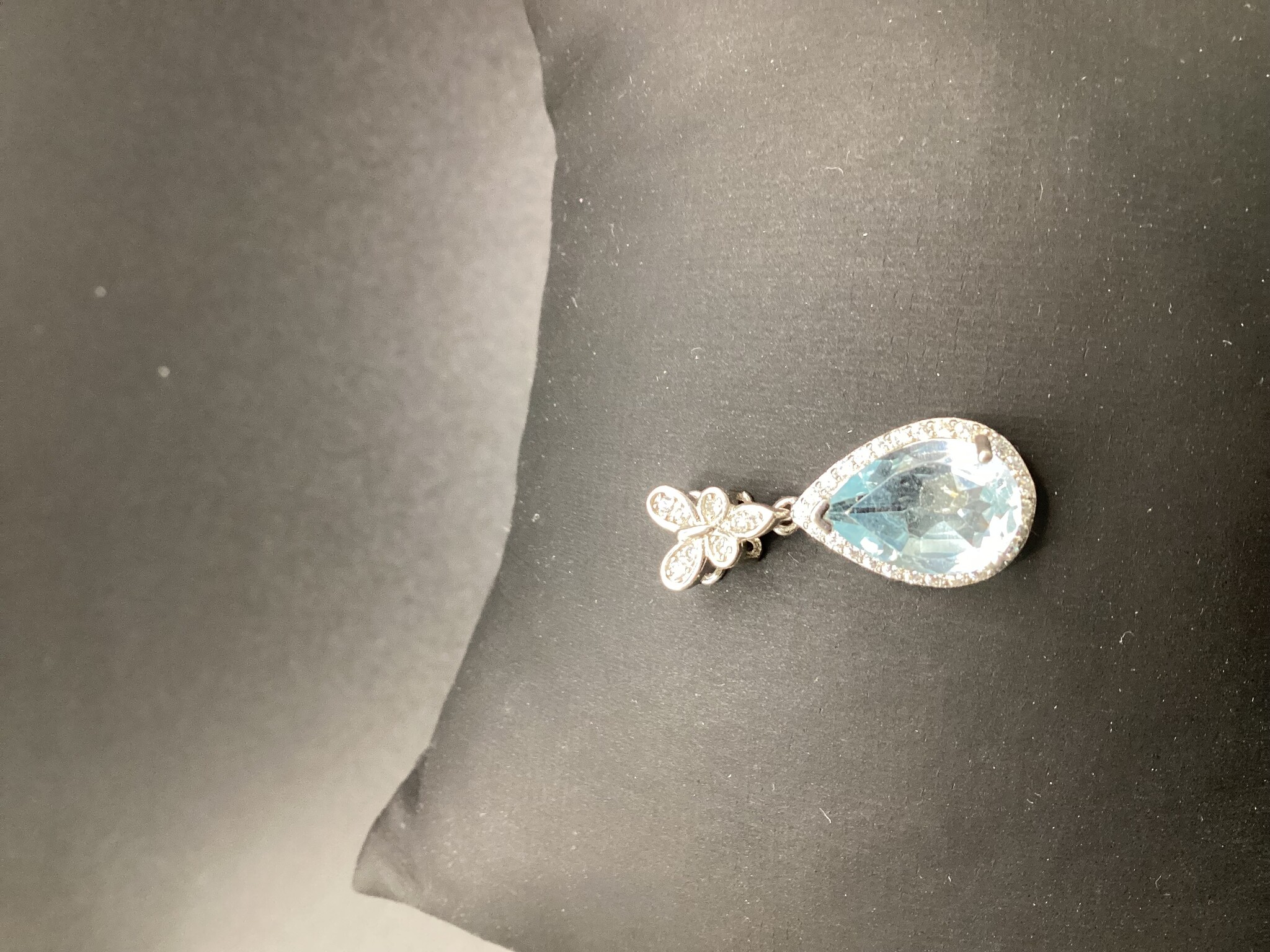Délicat pendentif topaze bleue, avec bélière papillon en argent S925.